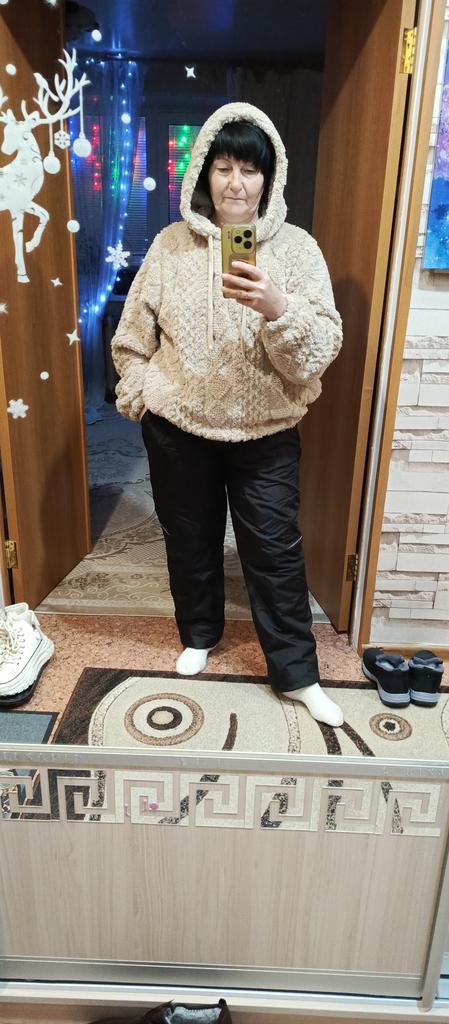 I took size 54-56. It fits loosely. It's warm, soft. The pile is high.