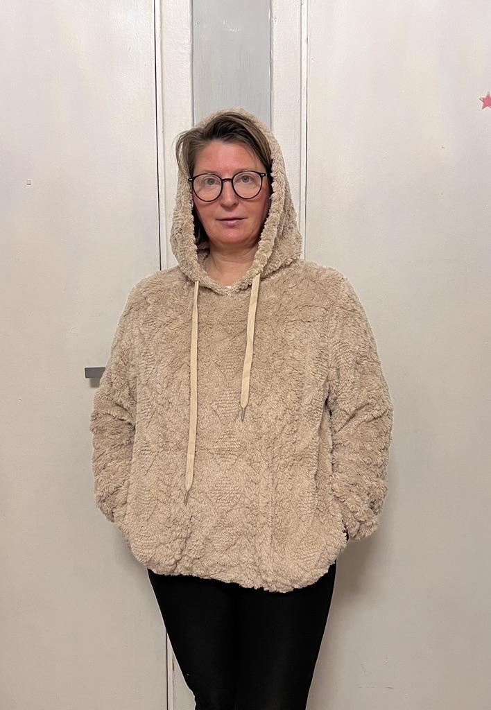 Very warm and fluffy hoodie. Perfect for winter, cozy to wear.