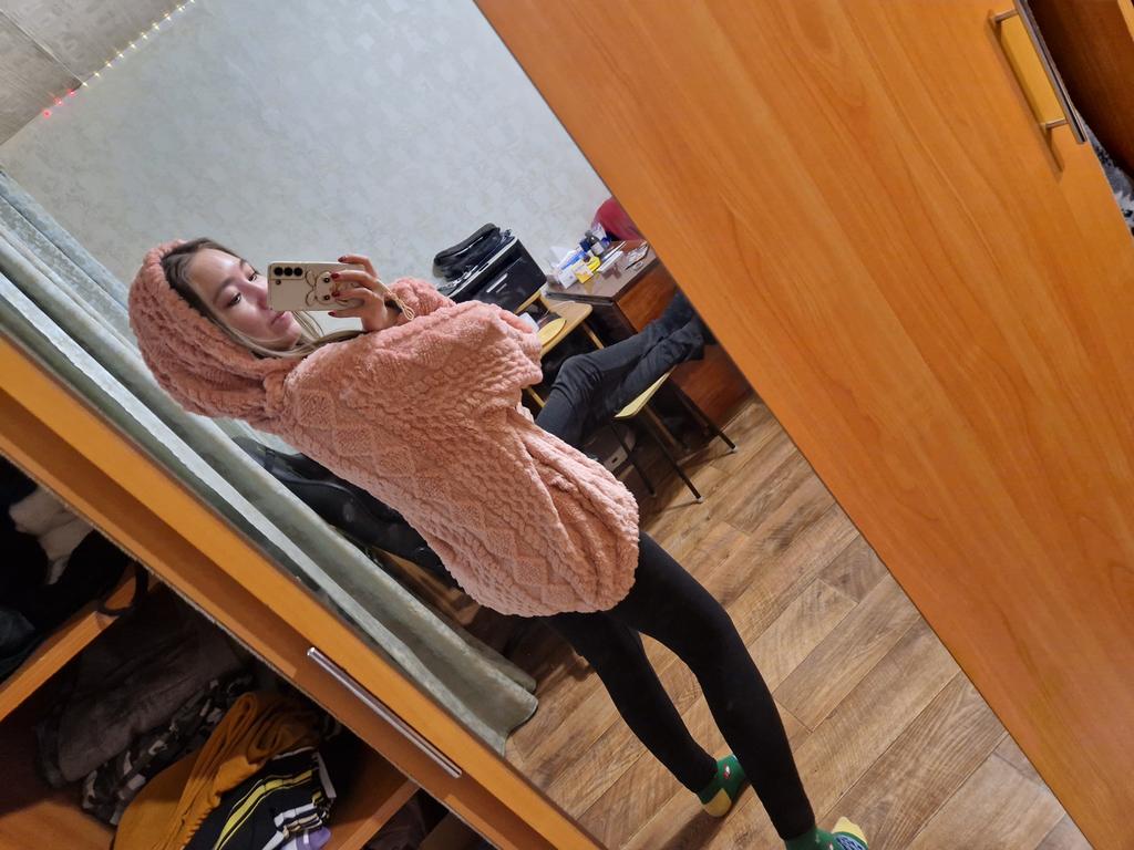 The sweater is soft, the color is coffee with milk. It fits perfectly in size, not tight on a 44, as I wanted, you can still wear something underneath. There are 2 pockets on the sides. I am satisfied with the purchase, thank you.