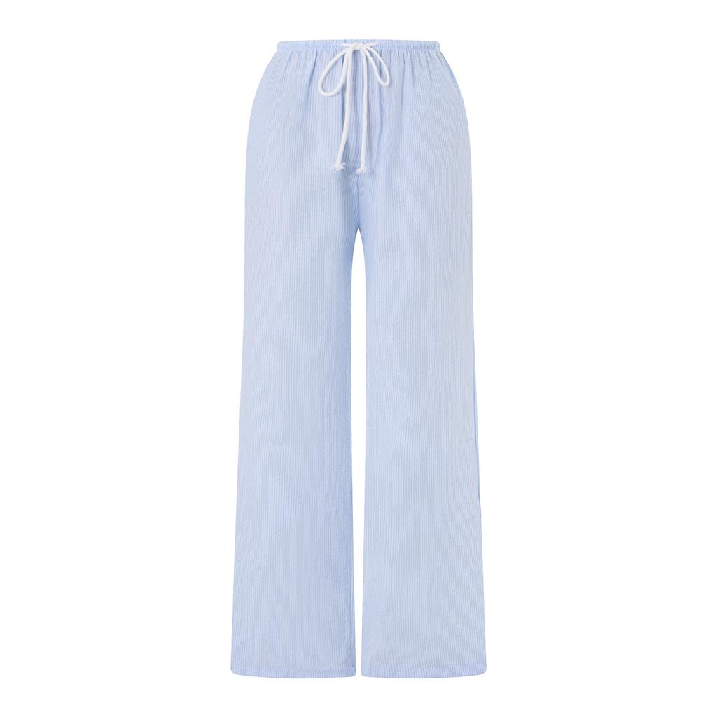 Women's Stripe Print Pants Drawstring Low Rise Straight Leg Trousers Sleep Bottoms