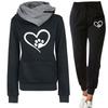 2Pcs/Set Women Autumn Winter Heart Print Sport Outfit Hooded Long Sleeve Front Pocket Sweatshirt Tops Elastic Waist Jogger Pants Tracksuit
