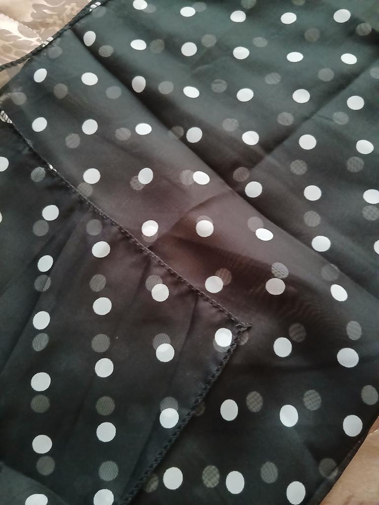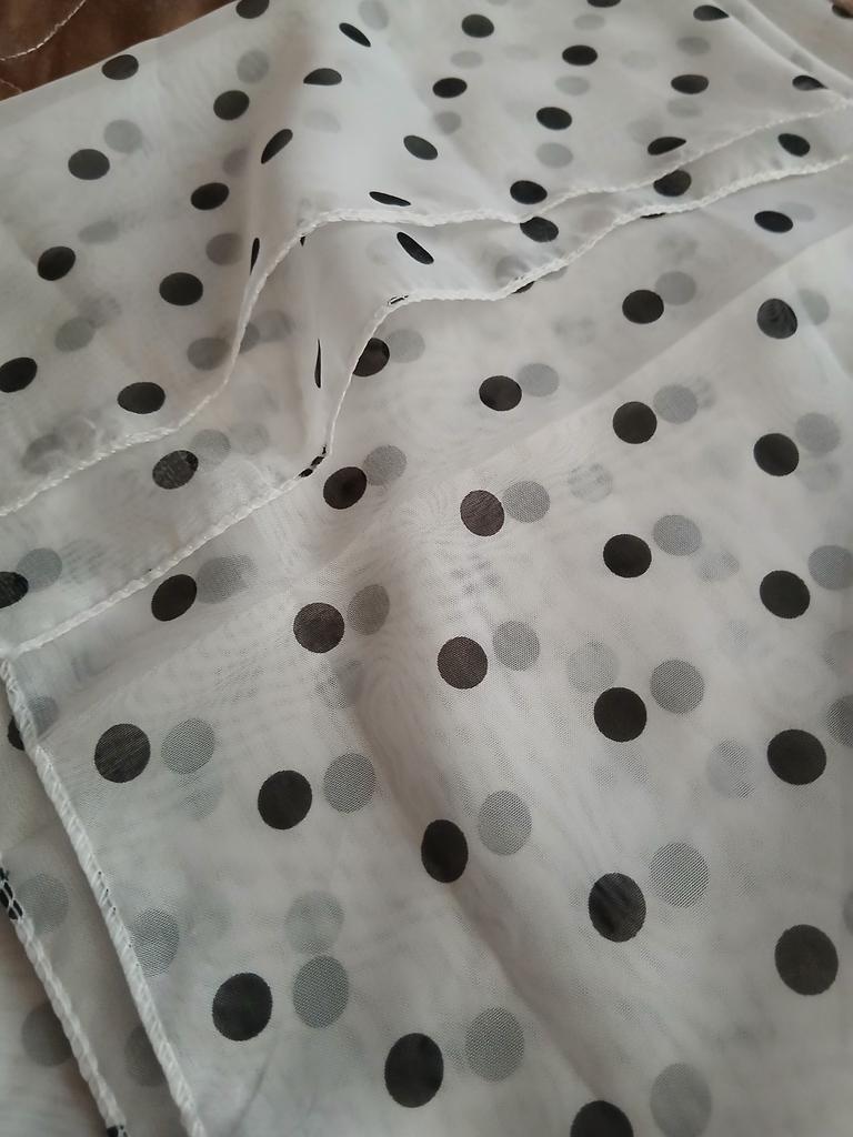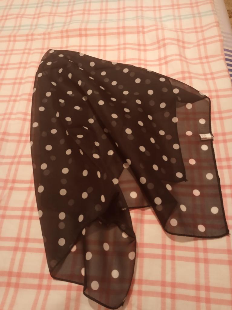 Ordered the one with red polka dots, now the one with white. I like the scarf, but I would like it to be bigger.