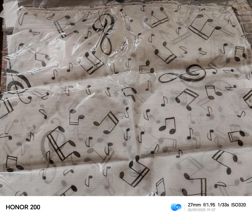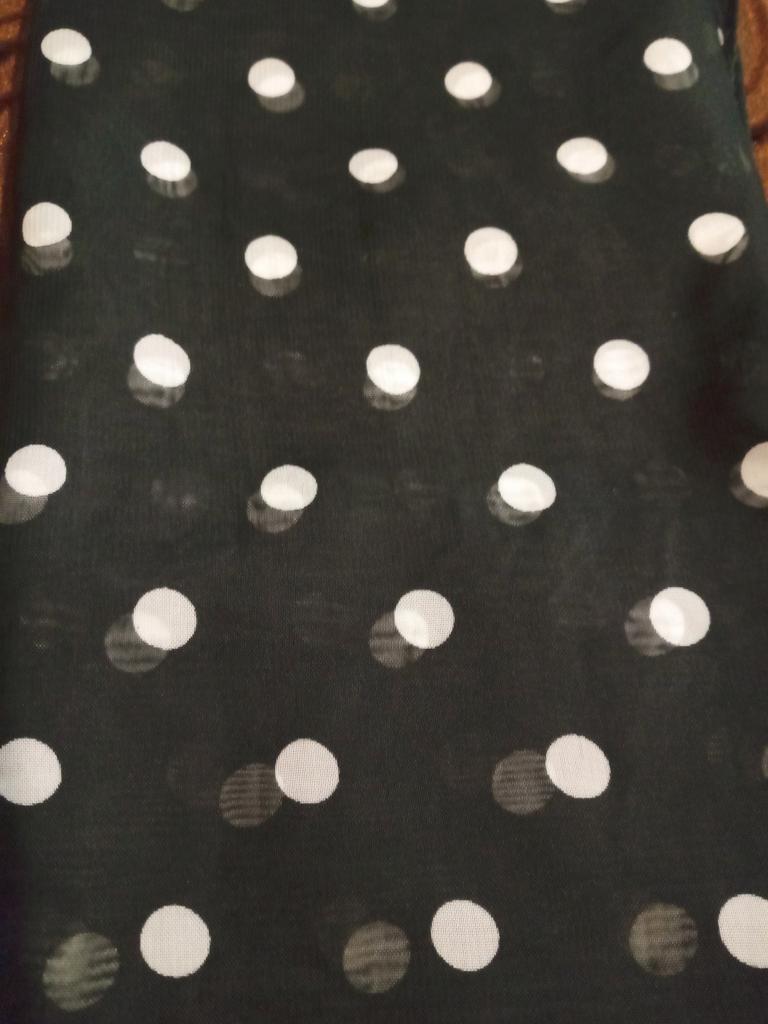 Thought it was chiffon. Ordered in small polka dots, not large.