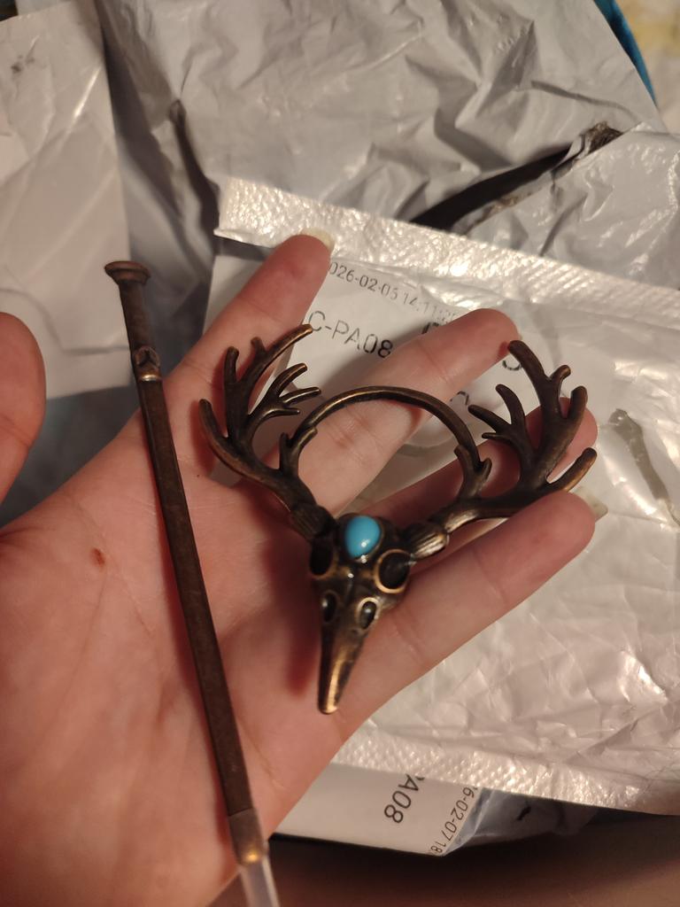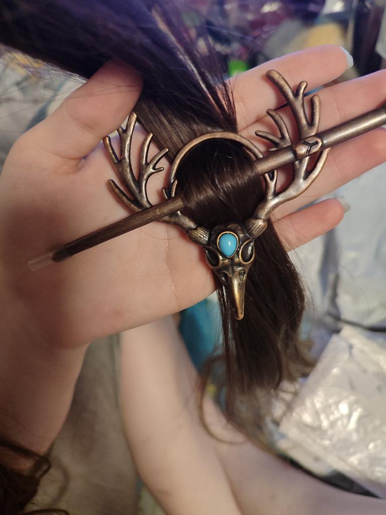 Nordic Gothic Crow Skull Antler Hairpin – Viking Headdress Halloween Hair Accessory