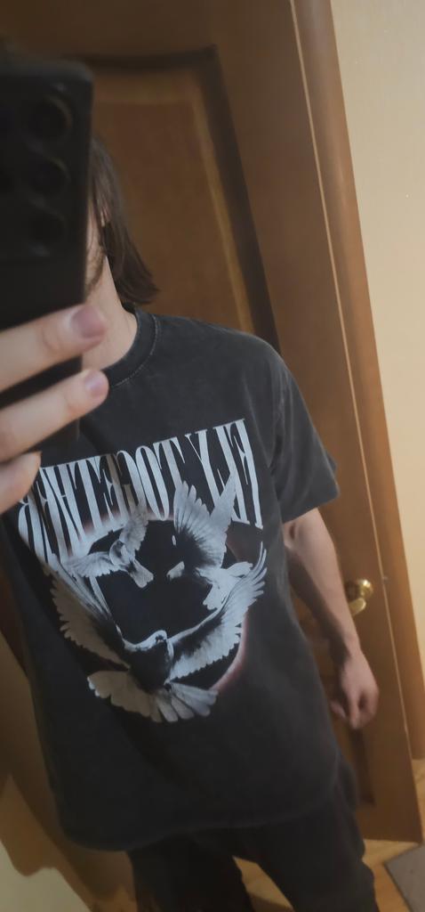 Top quality, reliable print. XL - L (USA). Fits angelically) There was a chemical smell, but it disappeared after the first wash, apparently from the print