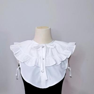 Sweet And Versatile Pure Cotton Doll Collar Ruffle Edge Big Collar Inside Shawl Women'S Solid Color Fake Collar