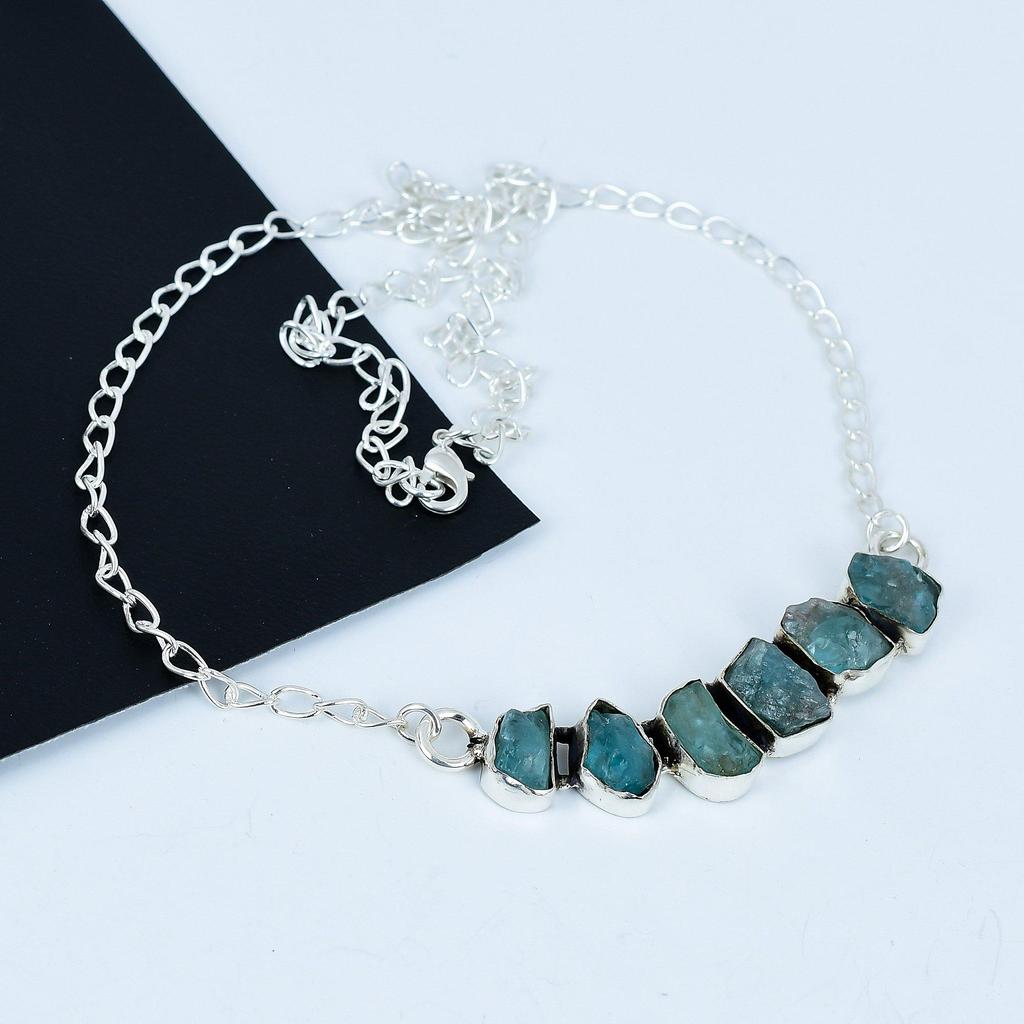 Natural Raw Apatite Gemstone Necklace In 925 Sterling Silver Handmade Gemstone Jewelry Perfect Gift for Her Boho Statement Necklace For Gift