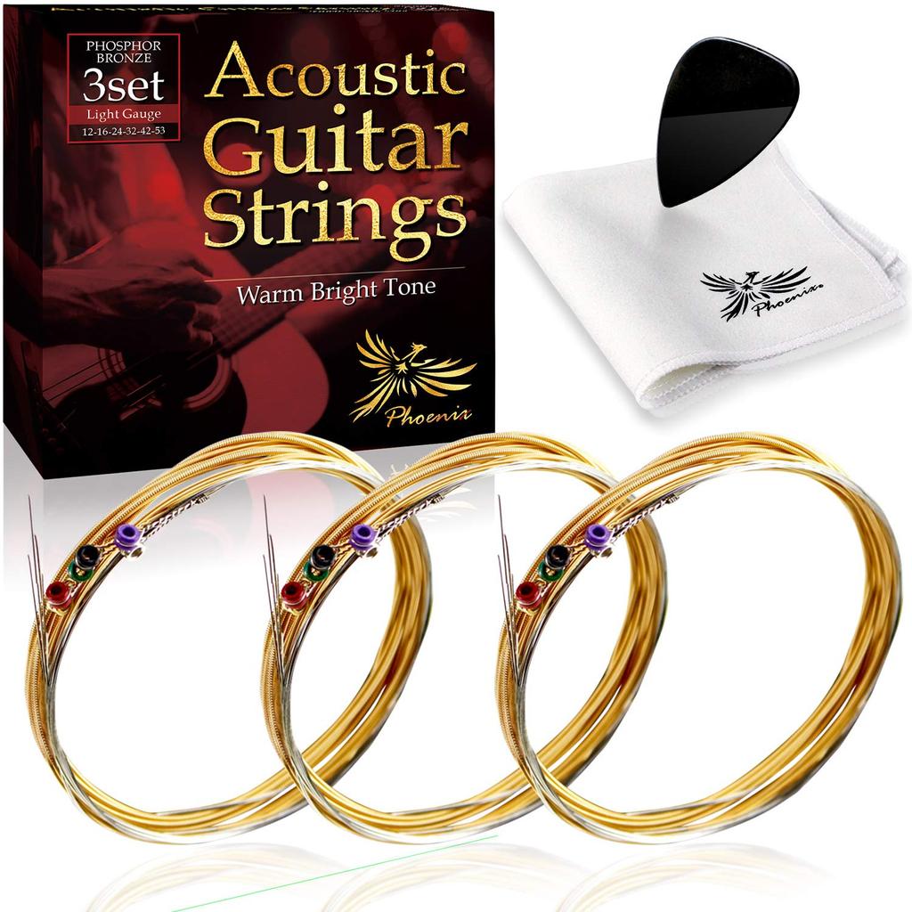 Phoenix Acoustic Guitar Strings Phosphor Bronze Warm Bright Tone 3set Transparent Sound Crisp Feeling Pole End Color Cloth Pick Included