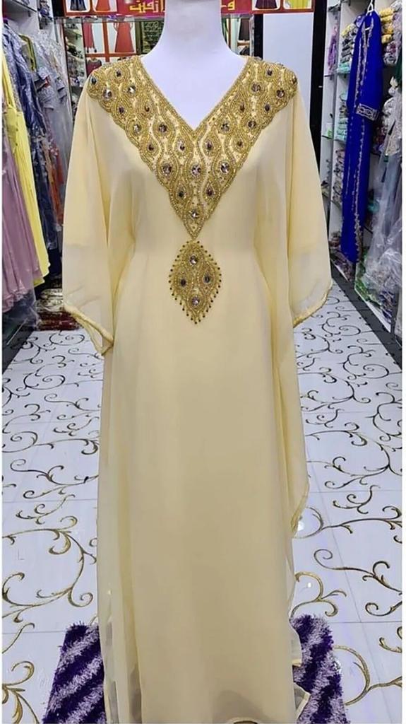New Moroccan Stylish Kaftan Maxi Farasha Fancy Long Cream Gown Abaya Dress Dubai