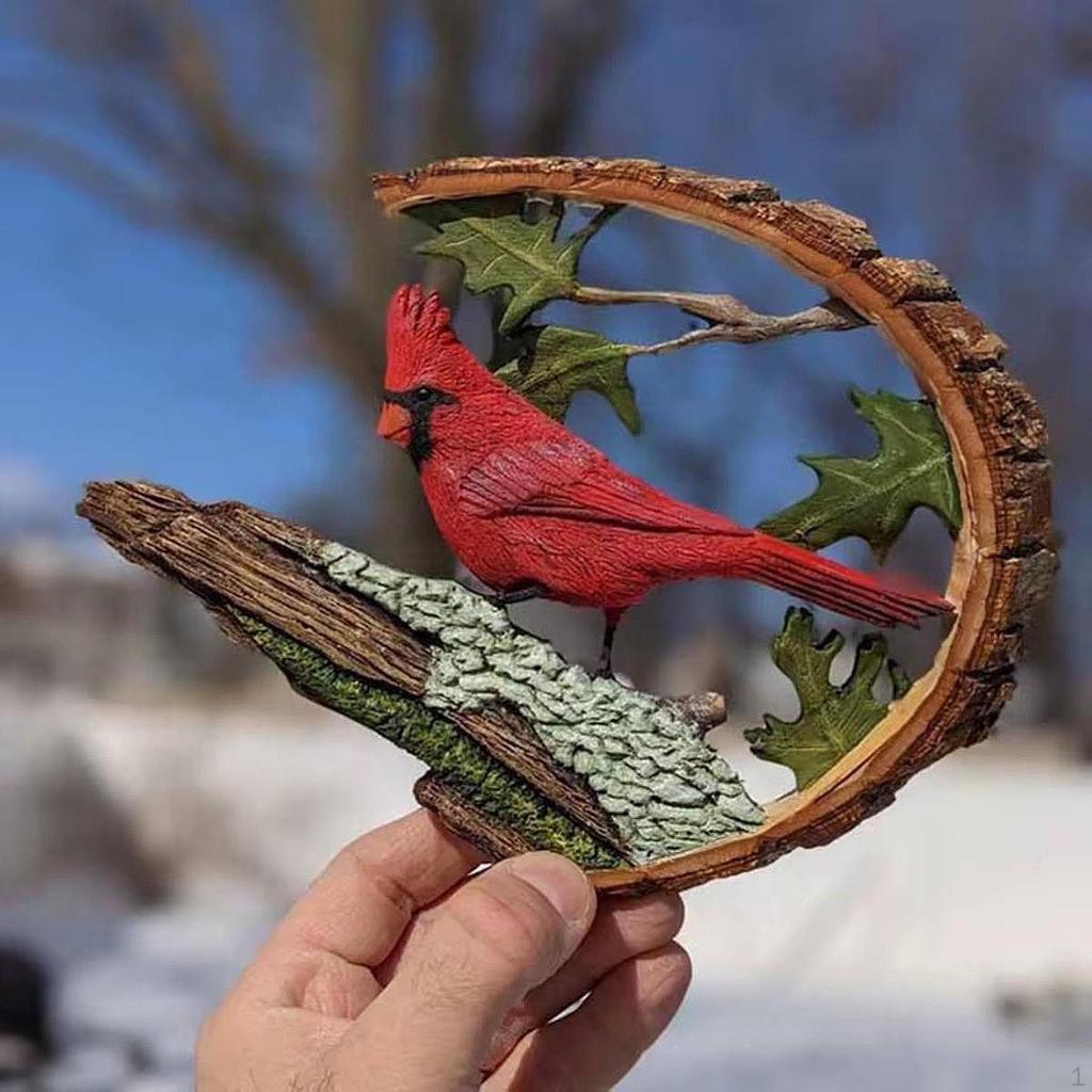 Cardinal Figurine Tabletop Decor Gift Collection Ornament, Red Bird Sculpture Resin Animal Statue