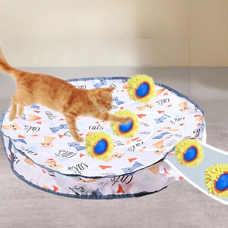 Double Layered Cat Toys Circular Cover Gaming Cover Pet Kittens Games Plush Stuffed Hidden Toys Plastic Interactive Pet Products with Charge Jump Ball