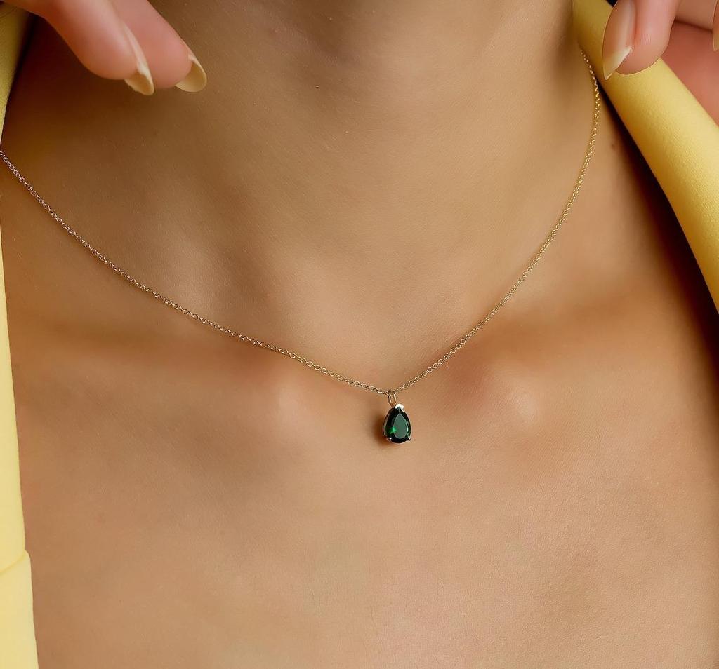 Emerald Solitaire Necklace, 14K Solid Yellow Gold Emerald Necklace, Pear Shape Emerald Necklace, May Birthstone, Green Emerald, Gemstone