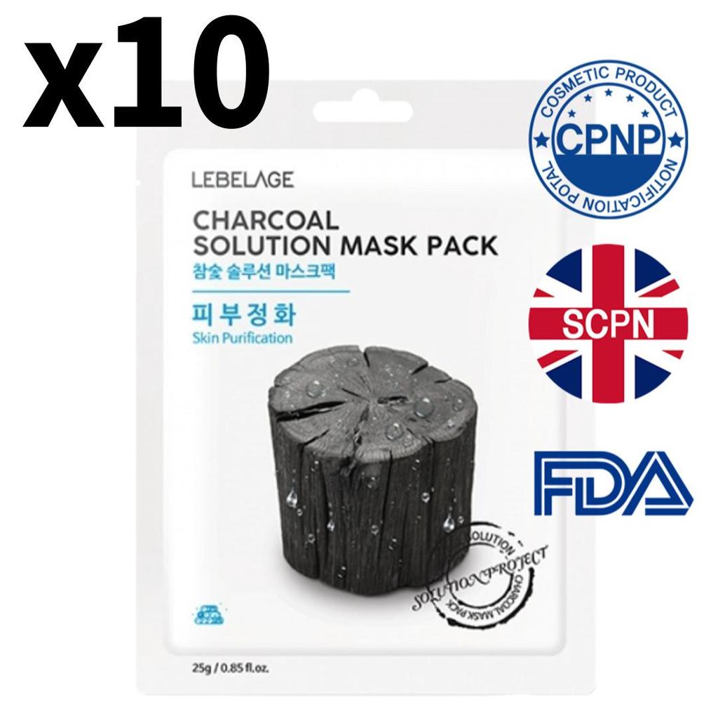 Charcoal Solution Mask Pack (10 Sheets) – Purifying & Pore Tightening Face Masks
