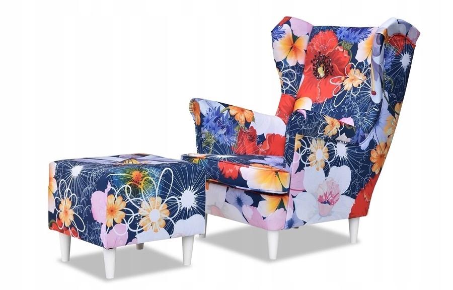 ARI PRINT Wing Chair with Footrest Scandinavian Family Meble Cornflowers