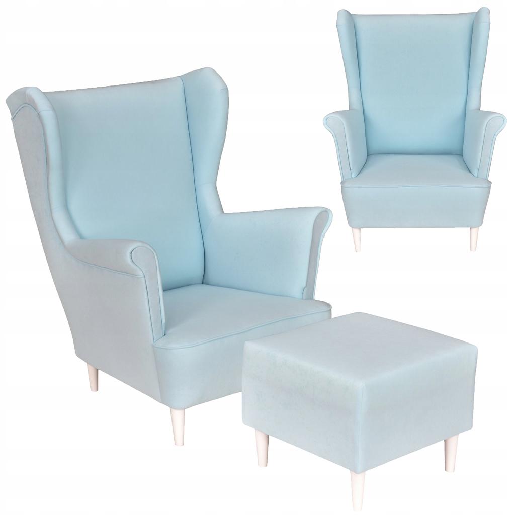 Wing Chair MAX with Footstool Scandinavian Family Furniture Pastel Blue