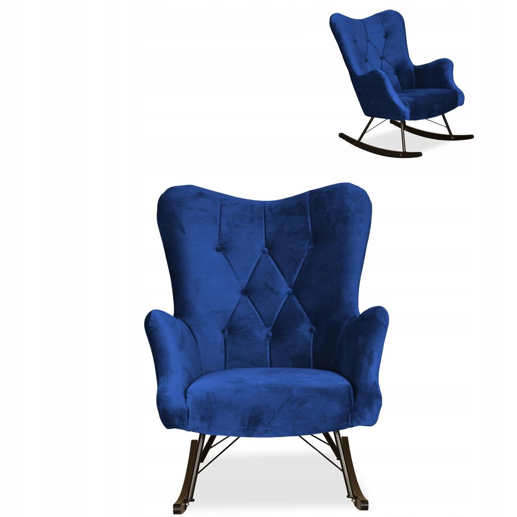 Luna Scandinavian Wing Chair, Rocking, On Runners, Family Meble, Indigo Blue