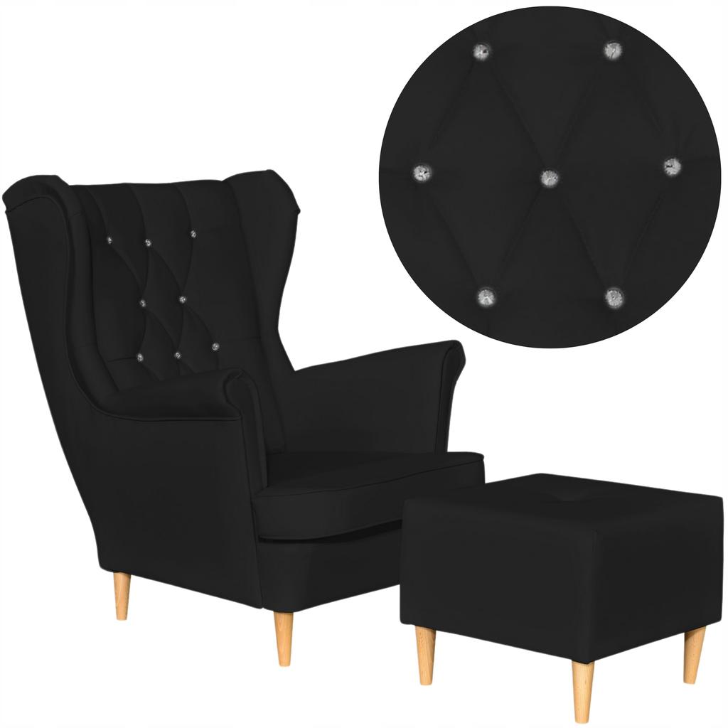 Fotel Uszak eko skóra Gaja z podnóżkiem Skandynawski Family meble czarny