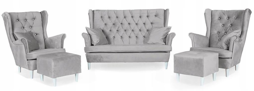 Zestaw wypoczynkowy mebli uszak Gaja sofa fotele pufy Family Meble komplet