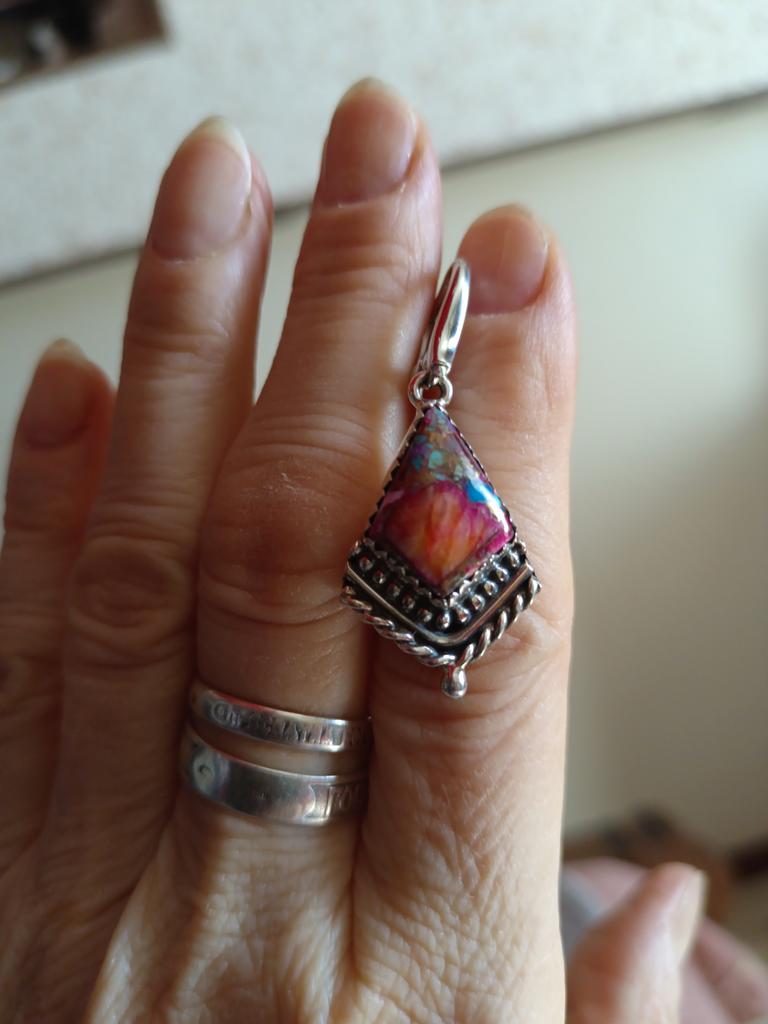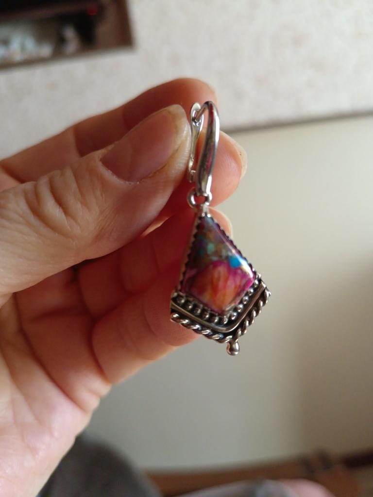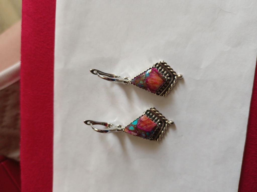 Natural Purple King Spiny Oyster Turquoise Gemstone Antique Earrings 925 Sterling Silver Earring, Boho Silver Jewelry Dangle Earrings, Gifts