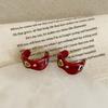 Red Oil Drip Colored Diamond Love Stud Earrings Women'S Unique Design Sense Personality Exquisite Light Luxury Elegant Versatile Earrings