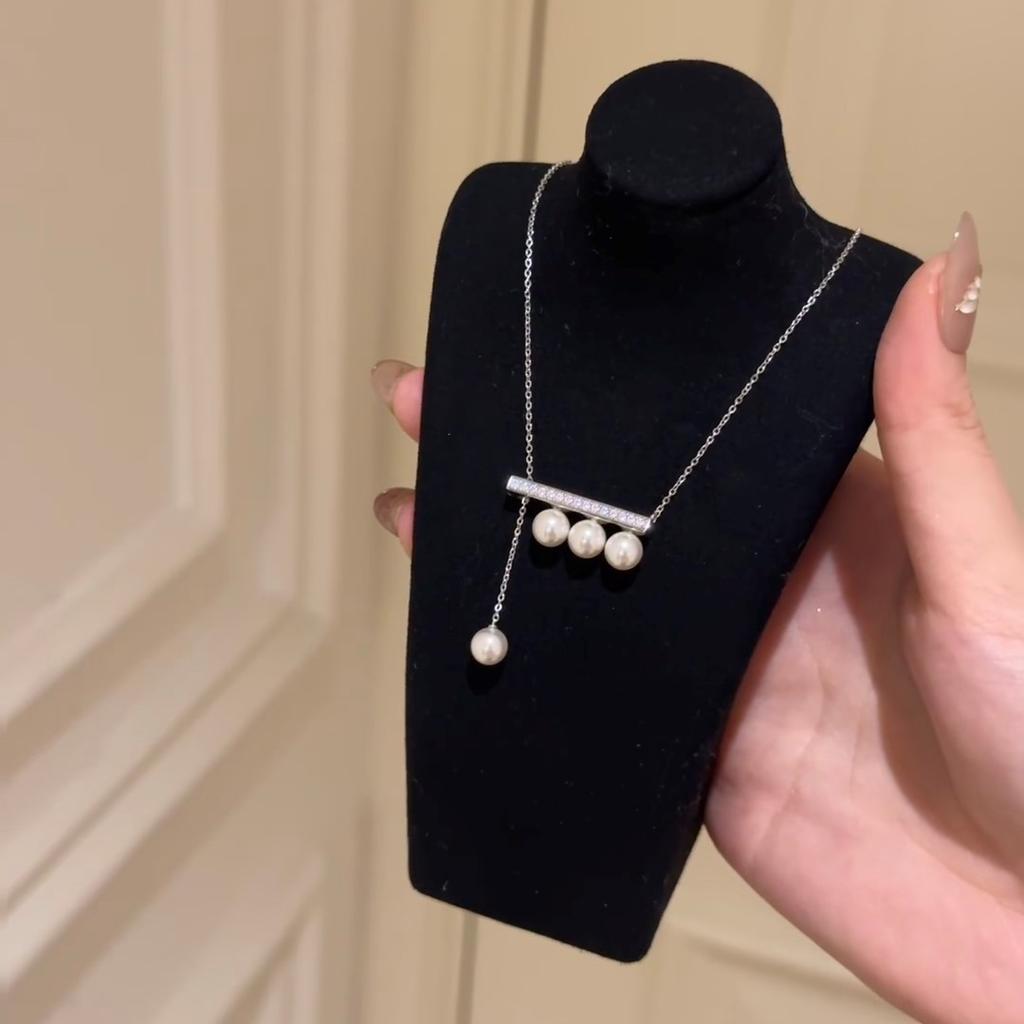 Design Balance Bar Pearl Pull-Up Necklace Women'S Simple Niche Fashion Personality Versatile Neck Chain Sweater Chain