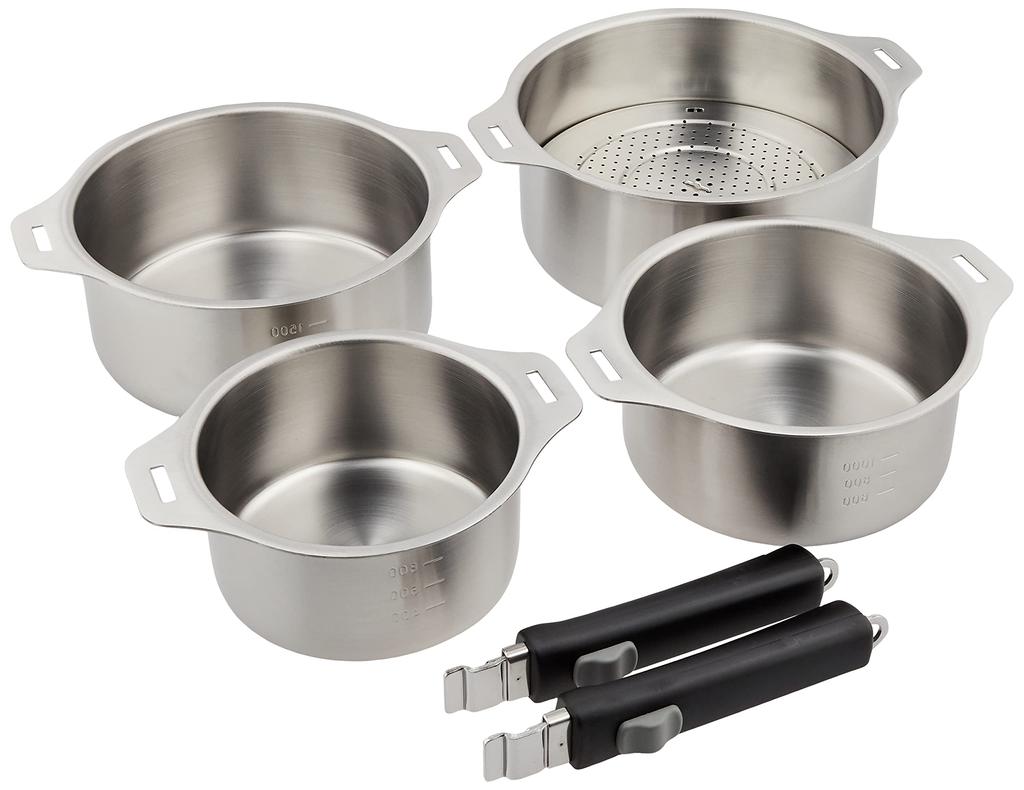 Wahei Freiz Made In Japan Tsubame Sanjo Pot Set with Removable Handle Comes with Steamer Stand Stainless Steel Compatible with IH Tsubame Sanjo