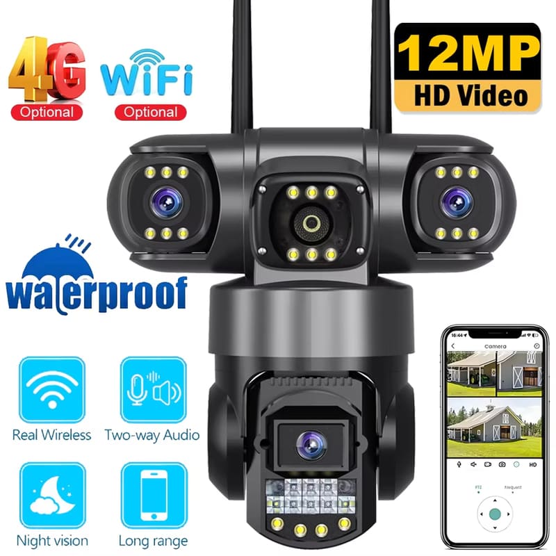3 Lens 12MP HD WiFi Camera Security Protection Home Surveillance Cameras Smart Home CCTV Cameras Outdoor Waterproof Surveillance