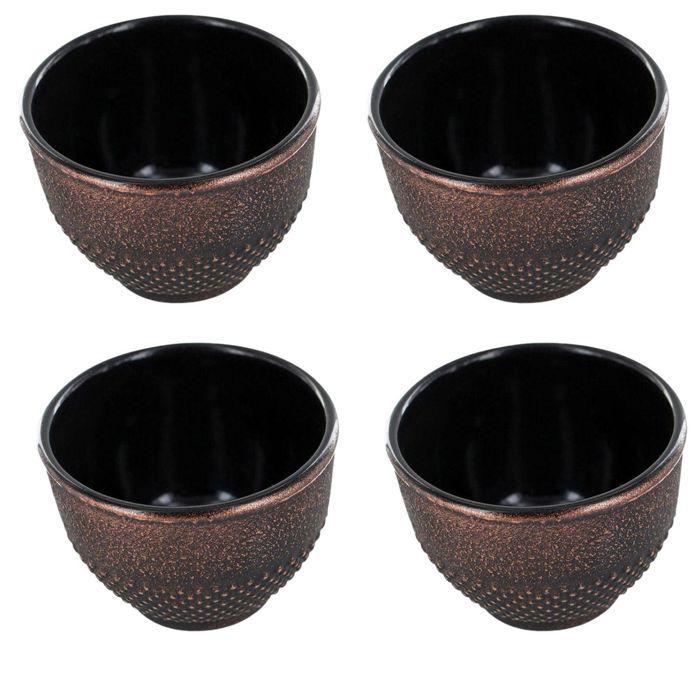 4 Black and Bronze Cast Iron Cups 0.15 L