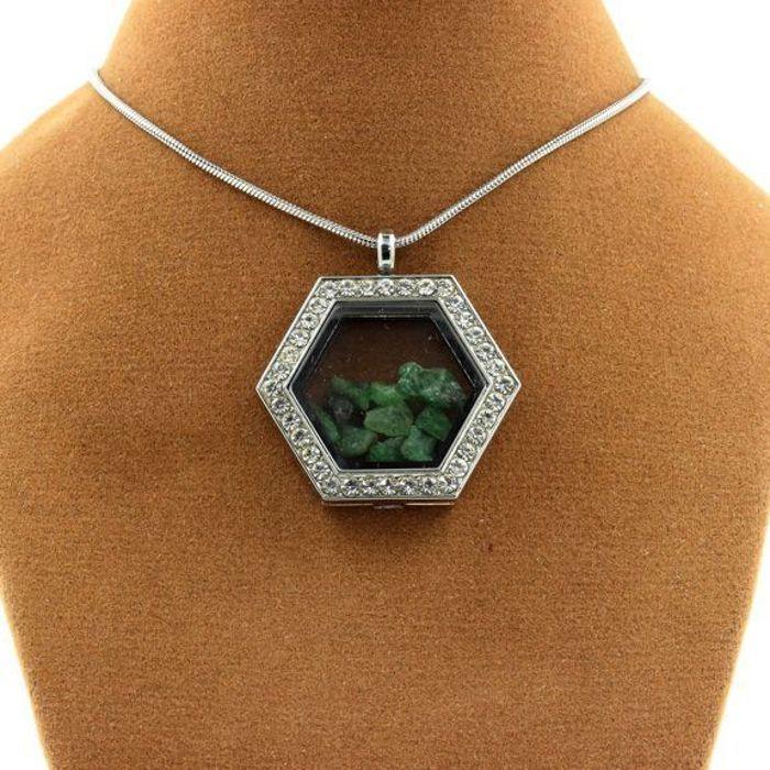 Stones and Minerals. Raw Tsavorite Garnet Necklace. Hexagon Model.