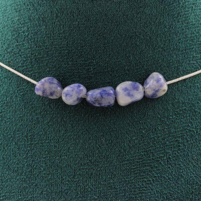 Stones and Minerals. 5-pearl Necklace of South African Blue Jasper. Steel Chain Necklace Women, Men. Customizable Size.
