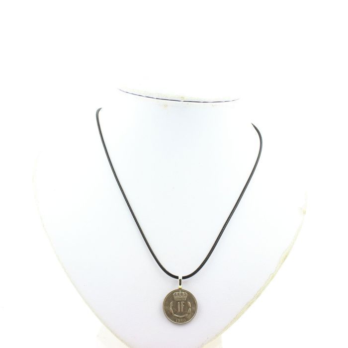 Pierres et Minéraux. Collier pièce de monnaie Luxembourg 1 franc - Jean . Cordon noir.