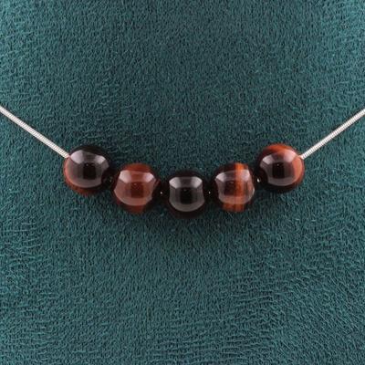 Stones and Minerals. Necklace 4 Red Tiger Eye Beads 8 Mm. Stainless Steel Chain Necklace Women Men. Custom Size