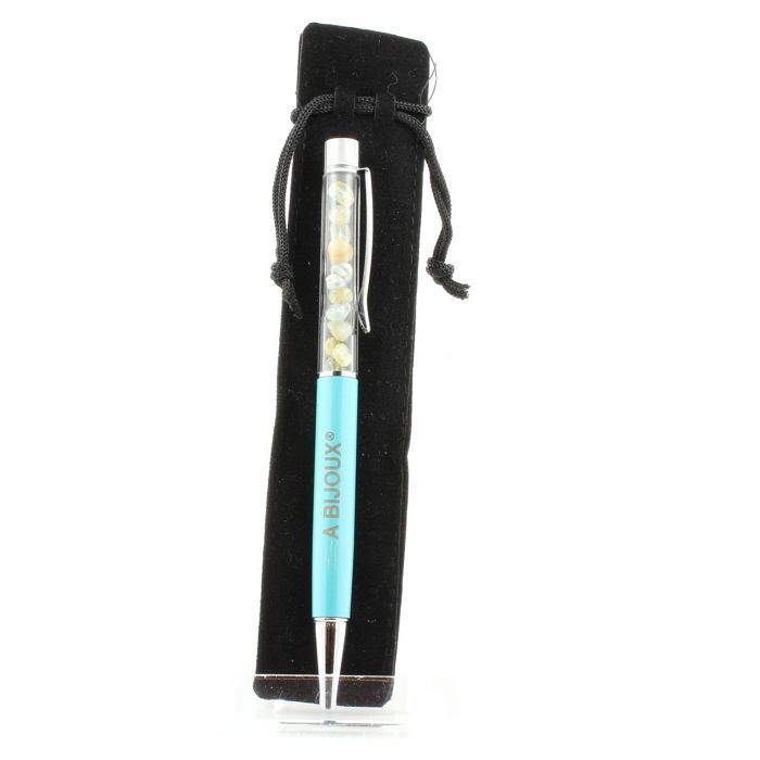 Stones and Minerals. Brazilian Topaz Mineral Pen. Color Turquoise Blue.