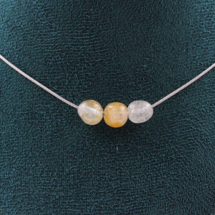 Stones and Minerals. 3-pearl Necklace Brazilian Topaz Stainless Steel Chain Necklace for Women and Men. Customizable Size.