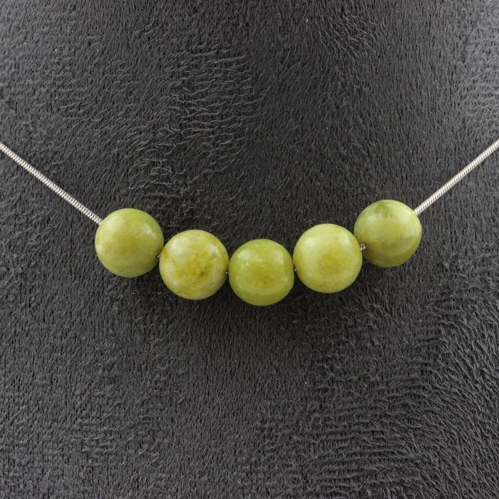 Stones and Minerals. 5 Serpentine Beads Necklace 8mm Stainless Steel Chain Necklace for Women, Men. Customizable Size.