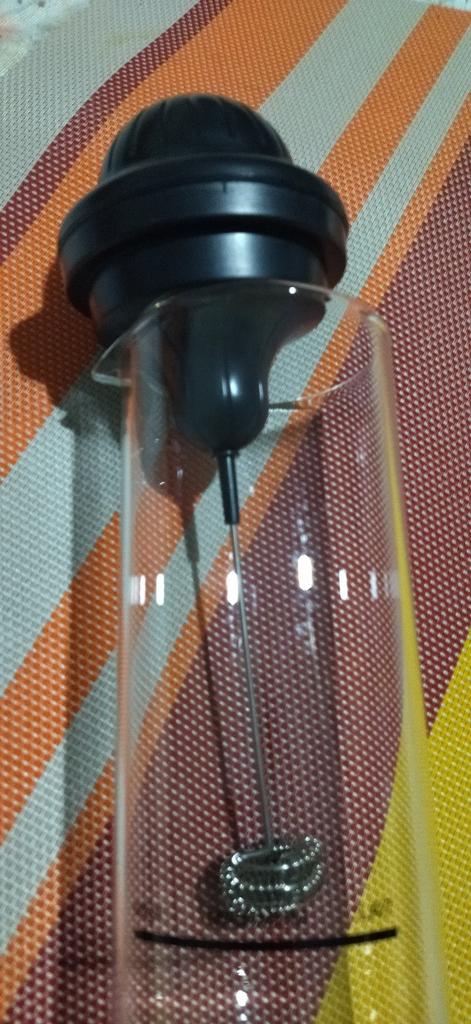 BEAUTIFUL, STURDY-LOOKING FOAMER, WITHOUT BATTERIES, ARRIVED IN A VERY CRUMPLED BOX, BUT THE BEAKER IS UNDAMAGED, THANK GOD!