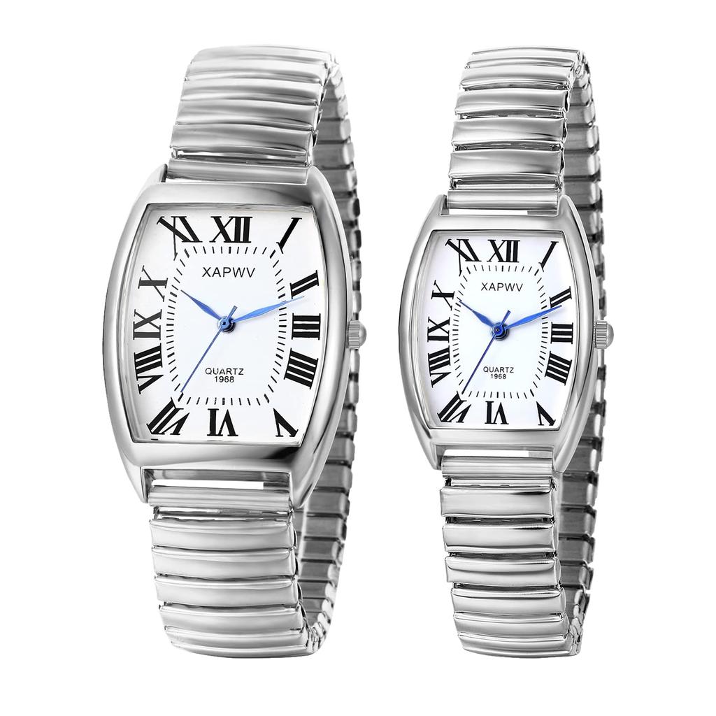 Watch Pair Couple Roman Alphabet Analog Display Square Antique Stylish Elastic Belt Pair Watch Quartz Watch Silver Fashion Accessories Birthday