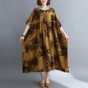 Women's Spring and Summer Thin Round Neck Casual Literary Cotton Linen Printing Short Sleeved Mid Length Dresses