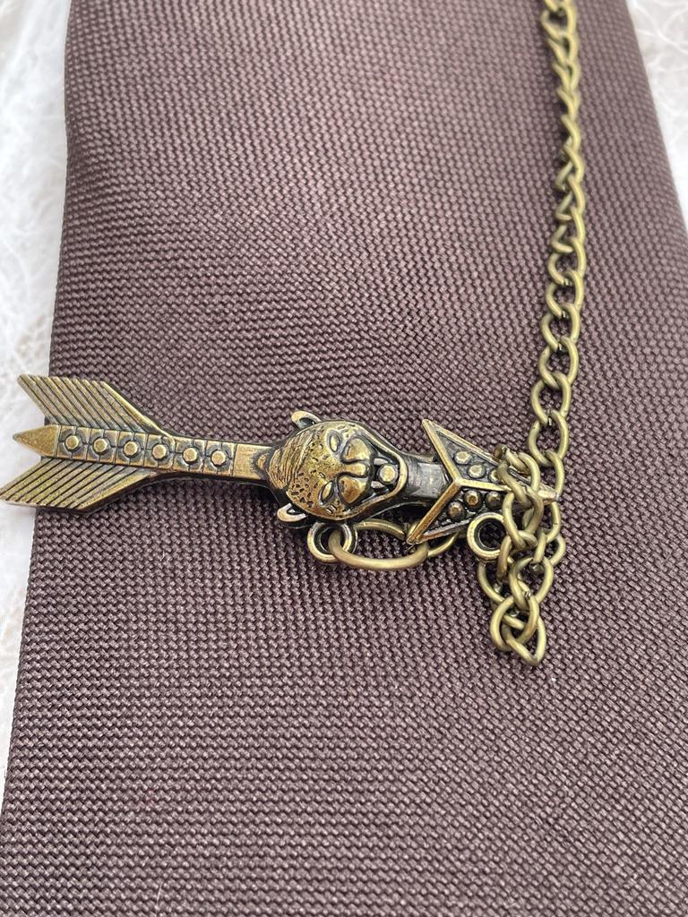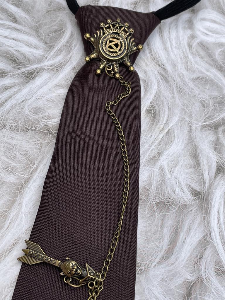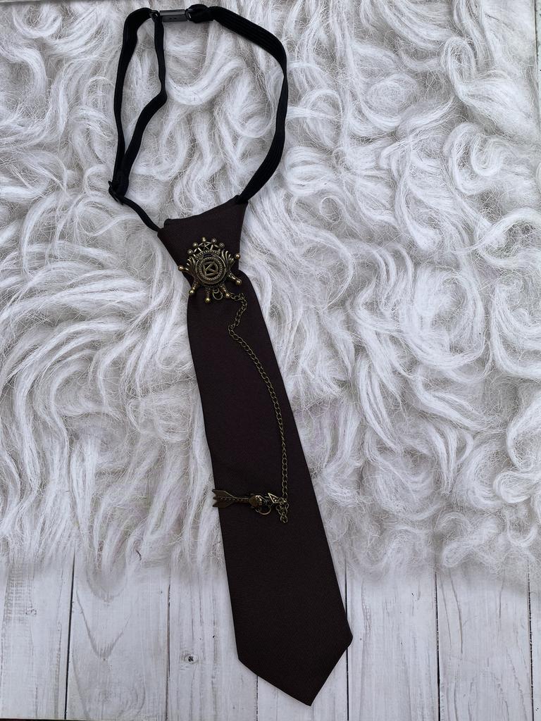 Stylish tie on elastic band👍 Such a retro tie looks very interesting! A convenient ready-made option, a tie that doesn't need to be tied. Suit fabric. Two brooches are attached with pins, connected by a chain. Brooches are metal in a bronze color. Cool, under a shirt, jacket. I highly recommend it👍🧡👍