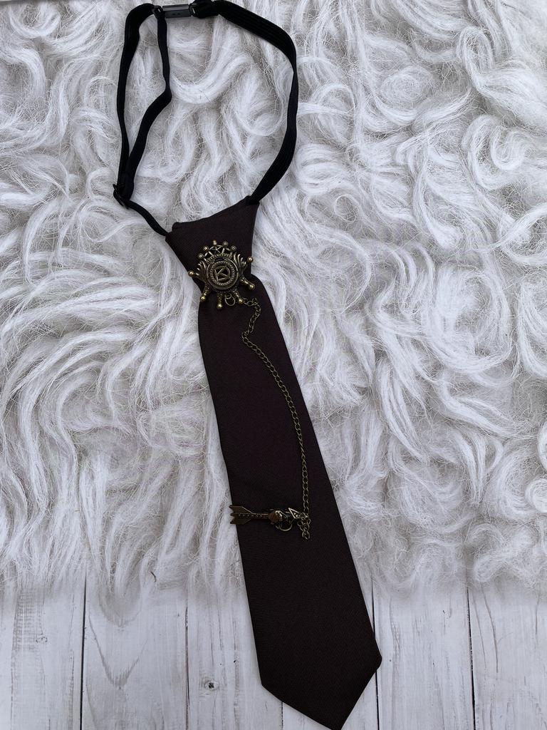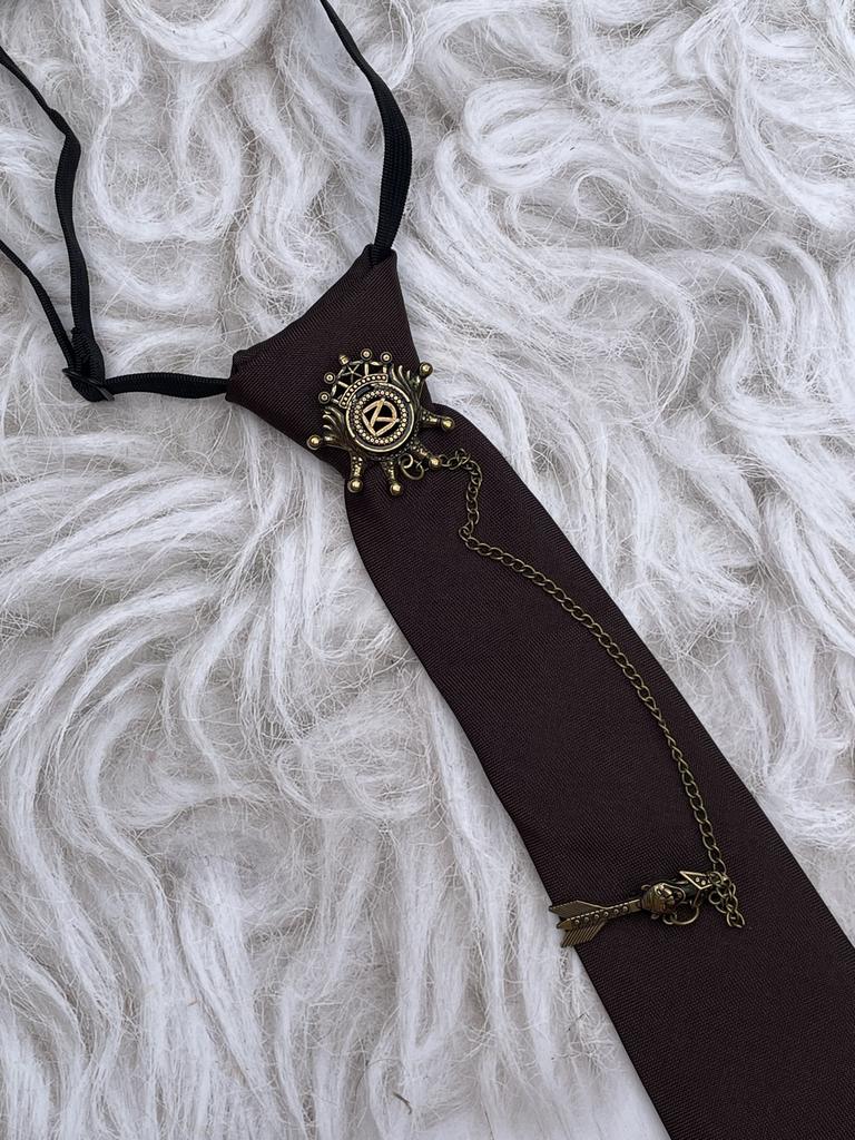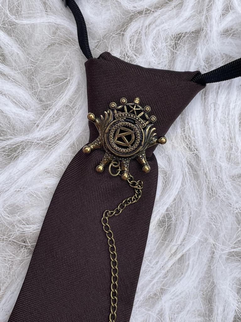 Retro Brown Versatile Knot-Free Tie Jk College Style Metal Chain Decorative Personalized Casual Tie