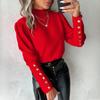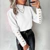 Women's Autumn and Winter Long Sleeve Solid Lace O-Neck Button Down Shirt Blouse