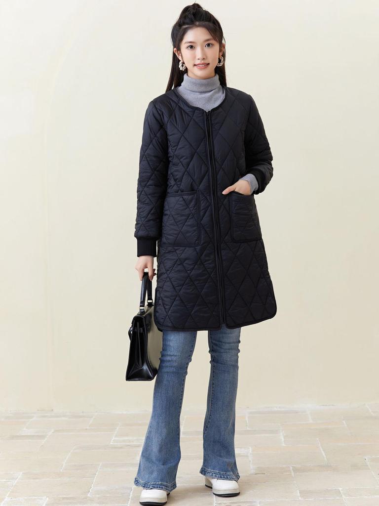Experience the perfect blend of style and comfort with this women's quilted long cotton coat. Designed with a luxurious, loose fit and featuring long, fur-trimmed sleeves, this coat is ideal for chilly days. The coat's nylon material offers durability and insulation, keeping you warm and cozy. Its solid pattern and round neckline provide a timeless and versatile look, making it a staple piece in any wardrobe. Elevate your outerwear collection with this stylish and practical garment, specifically designed for women who value both elegance and functionality.