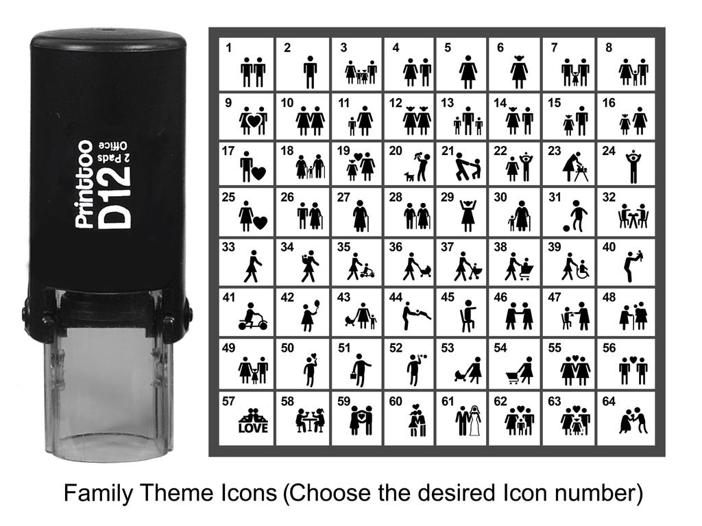 Printtoo Personalized Family Theme Icons Rubber Stamp Self Inking Stamper 12 Mm