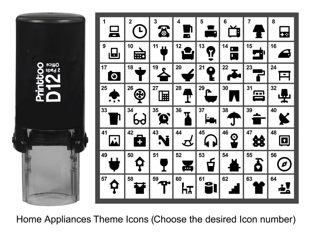 Printtoo Home Appliances Theme Round Rubber Stamp Self Inking Stamper 12 Mm