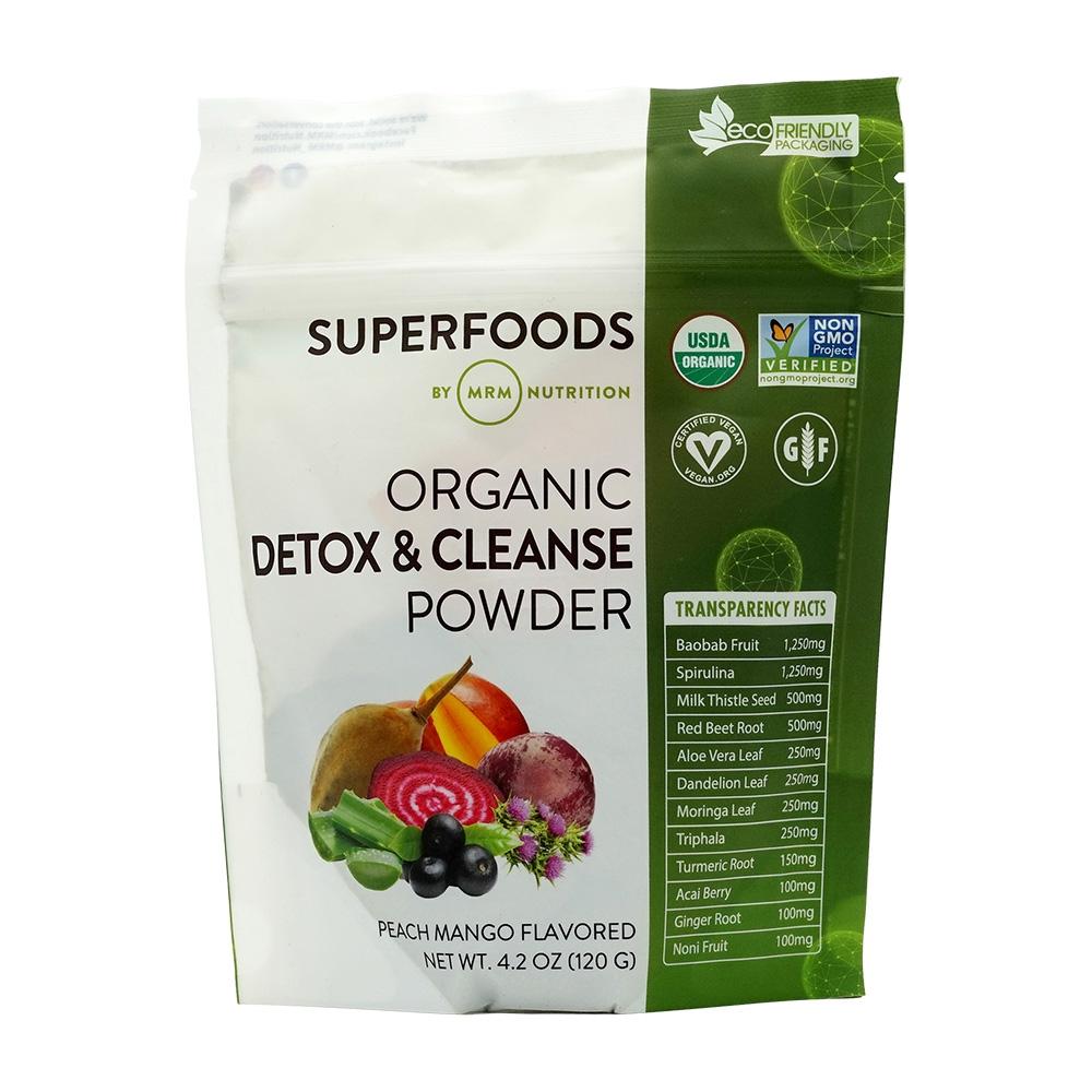MRM's Detox & Cleanse is a gentle, but powerful, formulation to support the body's detoxification process that rids the body of metabolic waste products and unwanted toxins. The superfoods and other ingredients in MRM's Detox and Cleanse increase blood flow and support the organs responsible for this natural process: liver, kidneys, and intestines. **These various detoxifiers have been used throughout history by different cultures in tonics, elixirs, and teas to promote vitality and organ health by increasing the function of various detoxification pathways.