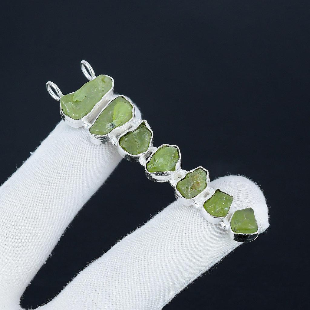 Natural Prehnite Raw Gemstone Silver Pendant In 925 Sterling Silver - Handmade Design, Everyday Wear Jewelry Party Wear Gift