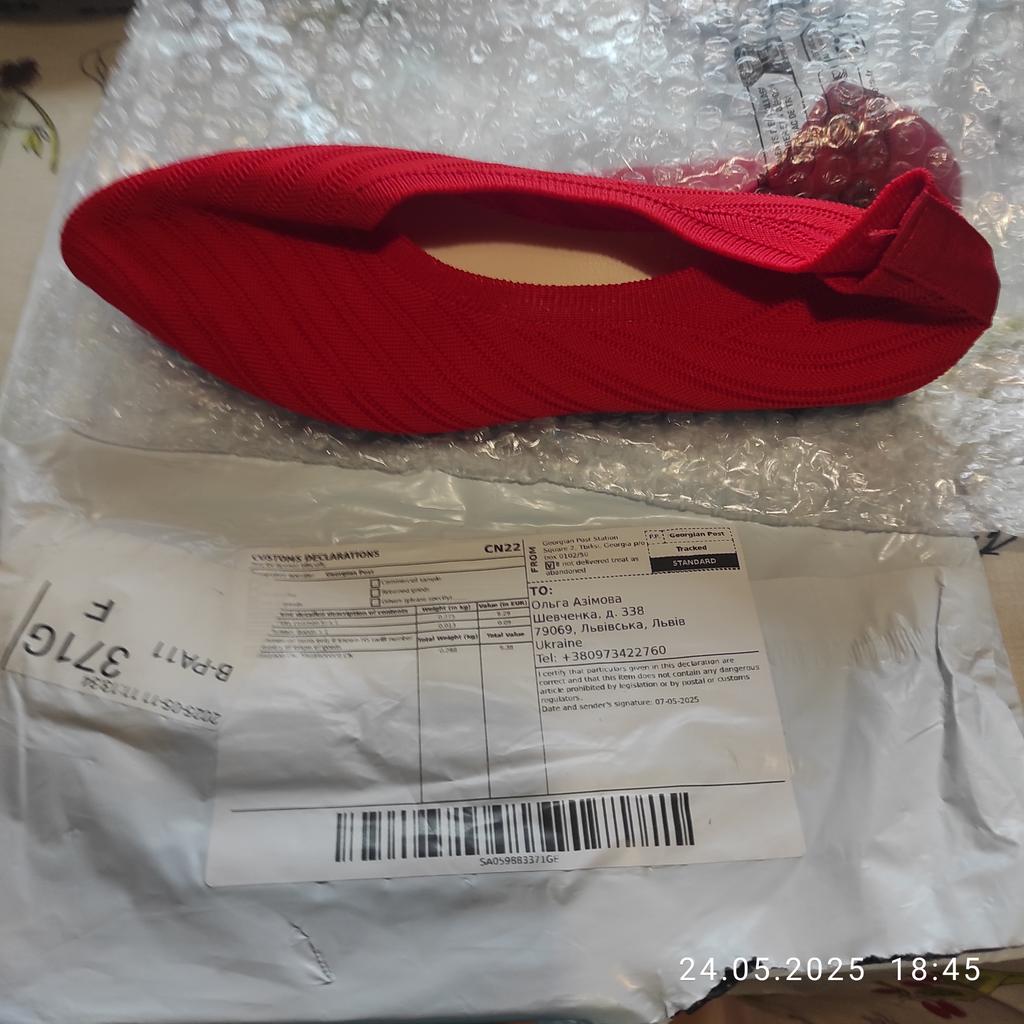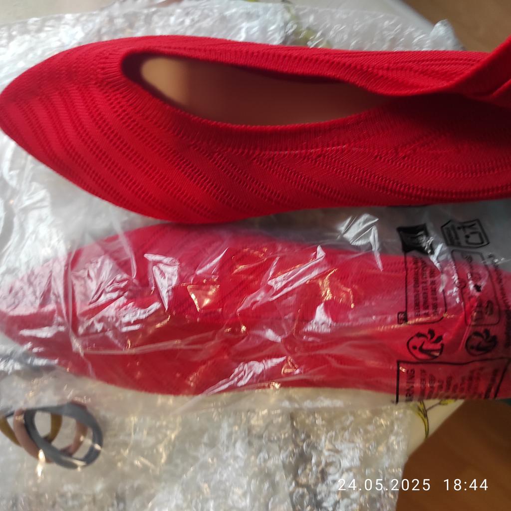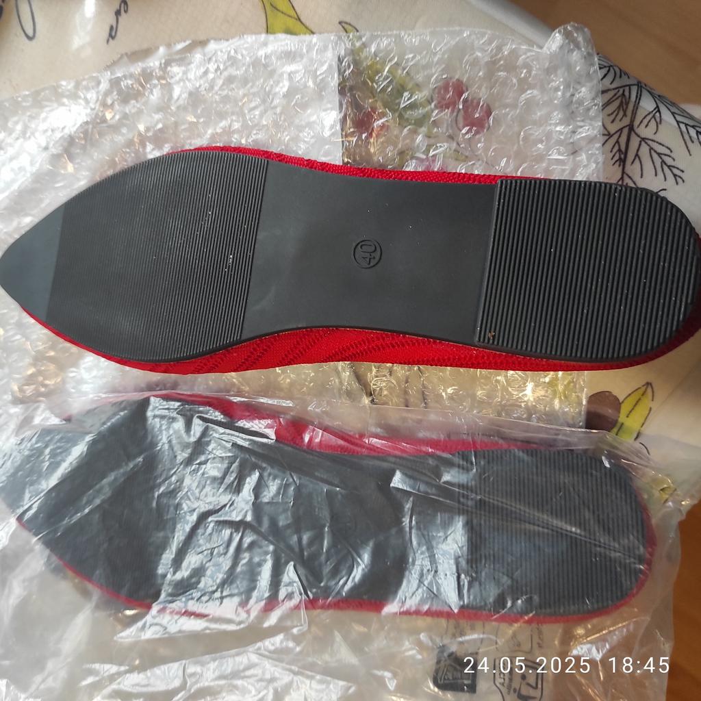 The ballet flats are very red, soft and look beautiful on the foot. My size is 40, 42 fits