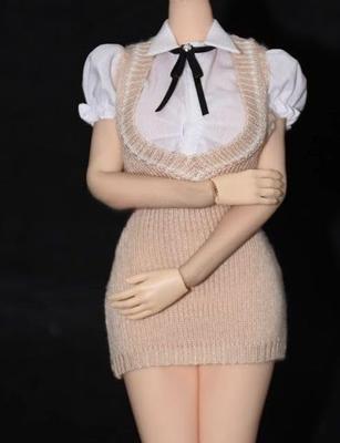 Hobby Toy Scale Figure Compatible with TBLeague Body Office Lady Beautiful Sexy Woman Fashion Short Sleeve White Puff Sleeve Shirt and Knit One Piece