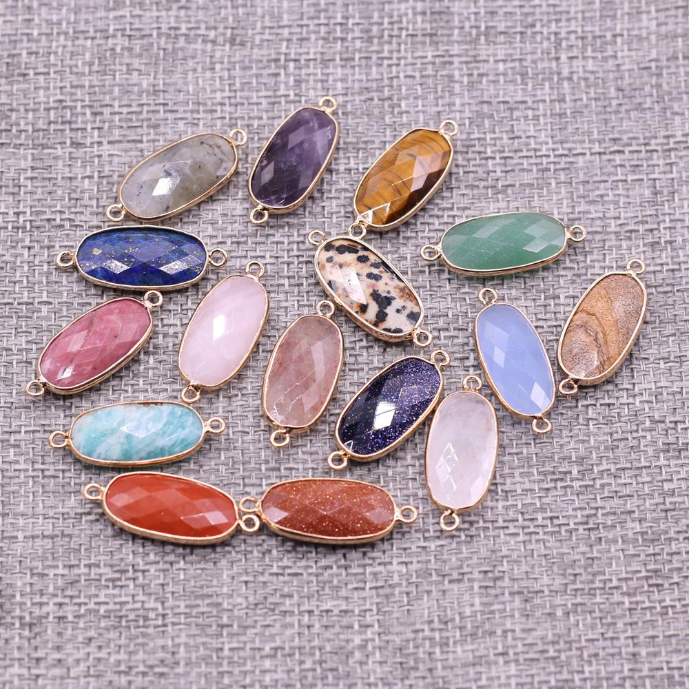 1Pc Reiki Healing Crystal Connector, Energy Natural Stone Oval Quartz Agate Amethyst Gemstone Pendant Charms Connectors for DIY Jewelry Making Craft