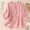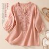 Spring Women‘s Shirt Solid Color Elegant Women's Blouses Floral Embroidered V-neck Blouse for Women Retro Style Loose Fit Shirt